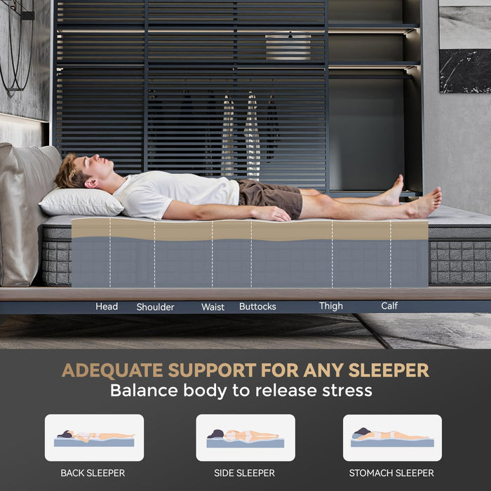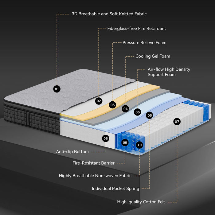 - [Undisturbed Deep Sleep] The independent pocket springs and double-reinforced 2.3mm edge springs create a stable sleeping environment. The pocket springs work independently, isolating every subtle shift and sound. The thoughtful design of the reinforced edges firmly prevents edge sagging, ensuring you sleep soundly in tranquility, enjoying undisturbed rest