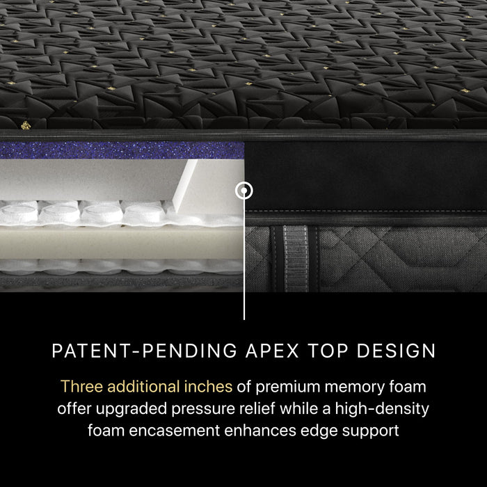 - Contouring: Patent-pending Apex Top design features three more inches of GelFeel Firm HD Memory Foam, while a high-density foam encasement enhances edge support; 4K Micro Coils and Self-Response Latex provide conformability and responsive pressure relief