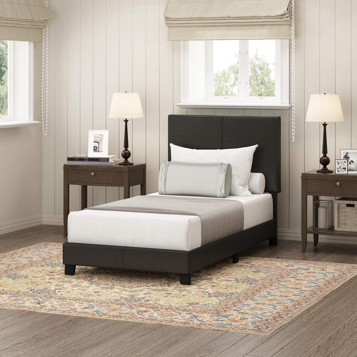 FURINNO Pessac PU Leather Upholstered Platform, Twin, Black