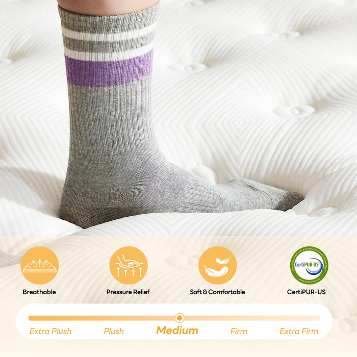 • ๐‚๐จ๐ฆ๐Ÿ๐จ๐ซ๐ญ & ๐’๐ญ๐ซ๐จ๐ง๐  ๐’๐ฎ๐ซ๐ฉ๐ฉ๐จ๐ซ๐ญ ๐‡๐ฒ๐›๐ข๐ซ๐ ๐Œ๐š๐ญ๐ญ๐ซ๐ž๐ฌ๐ฌ - This 10-inch queen size mattress is expertly crafted with individually wrapped pocket coils that adapt to your body's unique contours, providing targeted pressure relief and optimal spinal alignment. The motion-isolating technology ensures minimal disturbance from your partner or pets, offering you a truly restful night's sleep.
