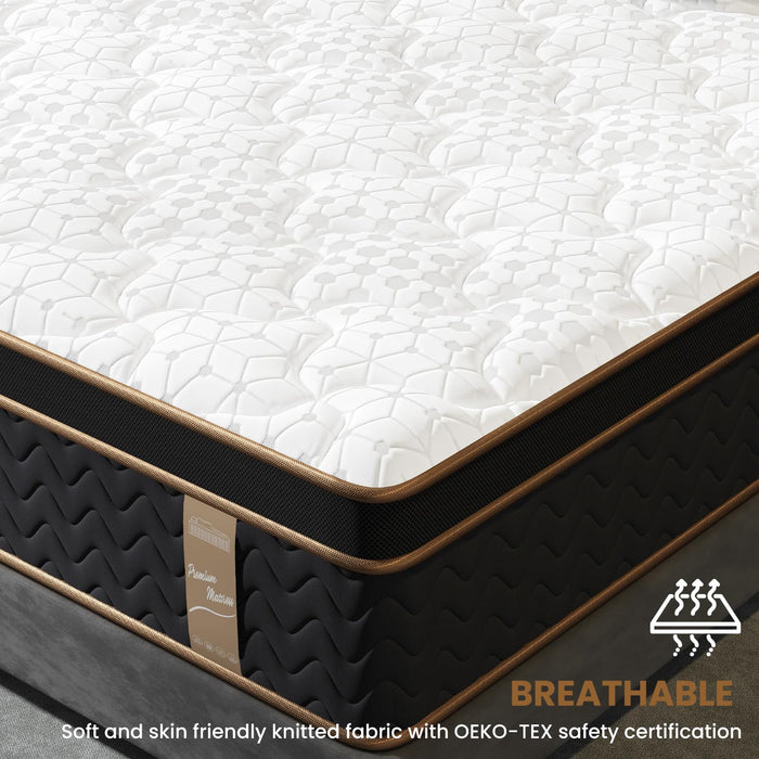 Queen Mattress, 12-Inch Deluxe Hybrid Mattresses, Fiberglass-Free Memory Foam Mattress in a Box, Individual Pocket Spring-Motion Isolation-Medium Firm-Extra Edge Support,365 Nights Trial,CertiPUR-US